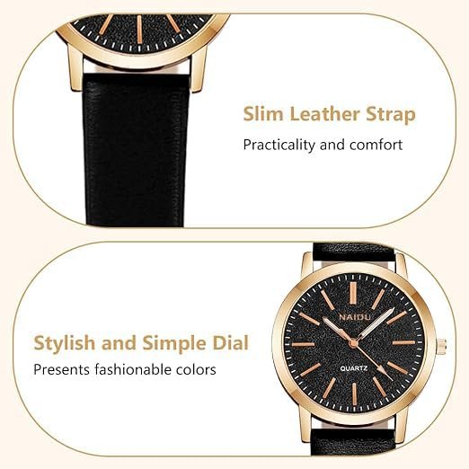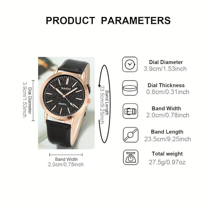 Crafted with precision, the watch features a durable PU strap that ensures long-lasting comfort. The round dial, enclosed within a sturdy rose gold case, adds sophistication while maintaining its lightweight appeal for everyday wear.